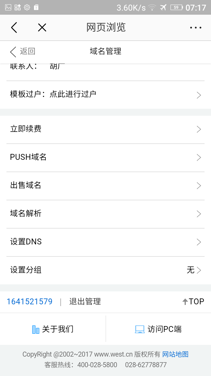 然后进入 空间管理后台 绑定域名 把你注册的 top域名 输入在 域名后面的输入框(比如chfo.top) 点击确定 复制 a记录解析上的 一个ip地址 104.255.173.189