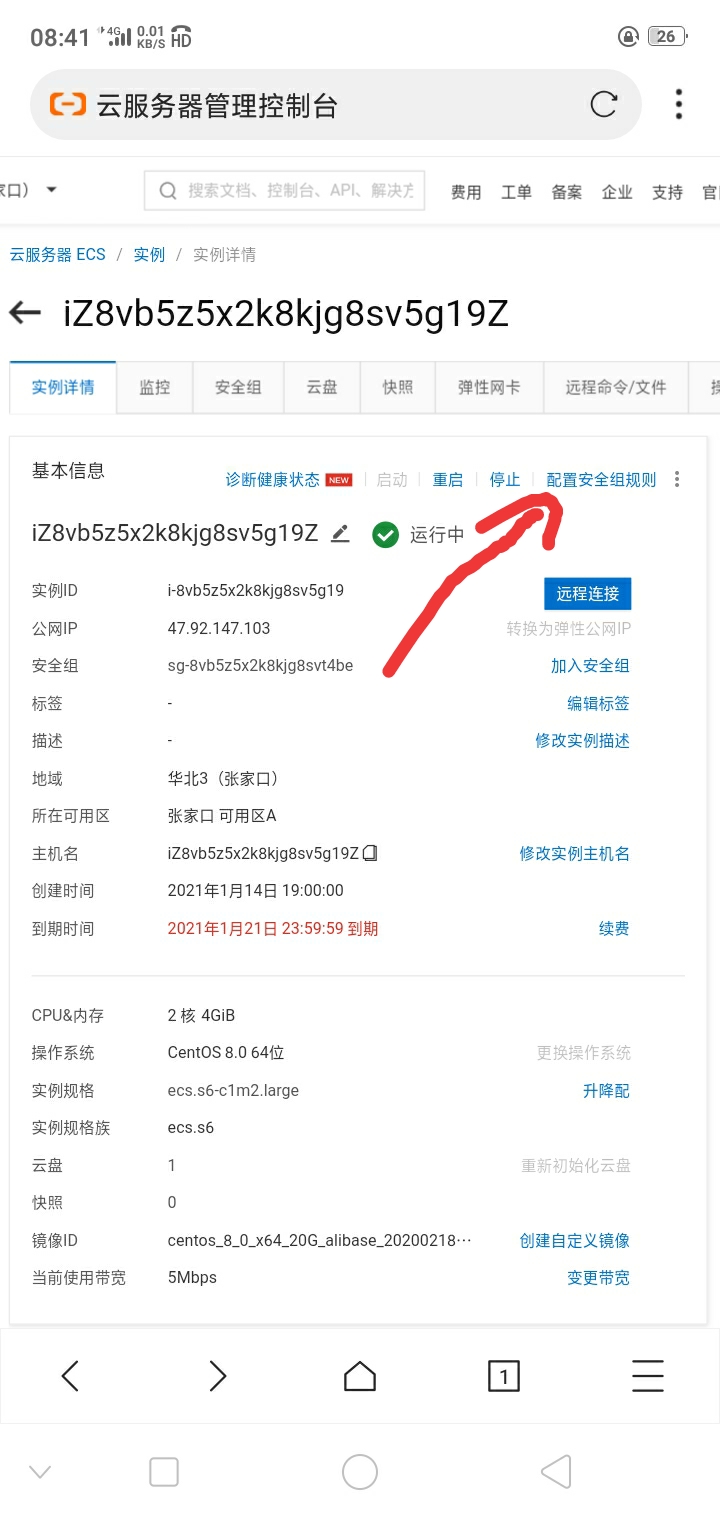 https://ecs.console.aliyun.com/①找到并点击你的阿里云ecs服务器