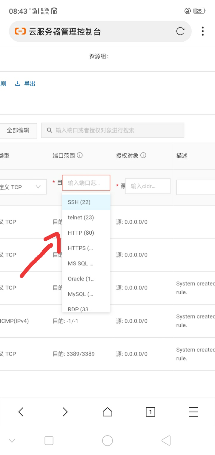 端口范围选择 http(80) 并加入