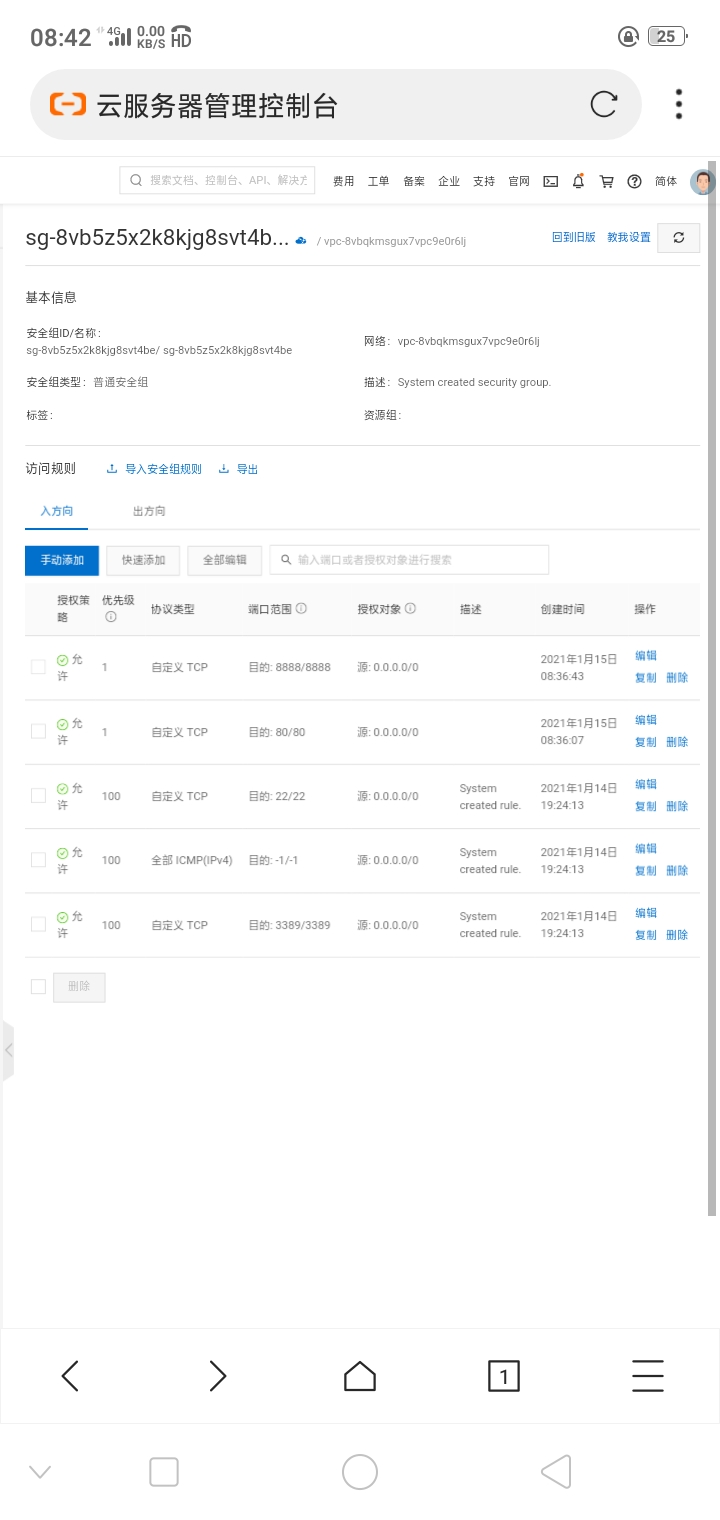 ③点击>配置安全组规则>配置规则